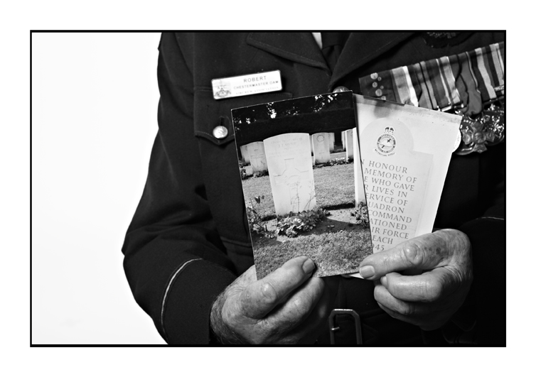 Robert Chester-Master. Rank – Flying Officer (Rear Gunner). Squadron – 514 (based at Waterbeach nr Cambridge). Type of Plane – Lancaster. 13 Missions. Shot down on 13th Aug. over Belgium on last mission. Photographs by: Glen Arkadieff.